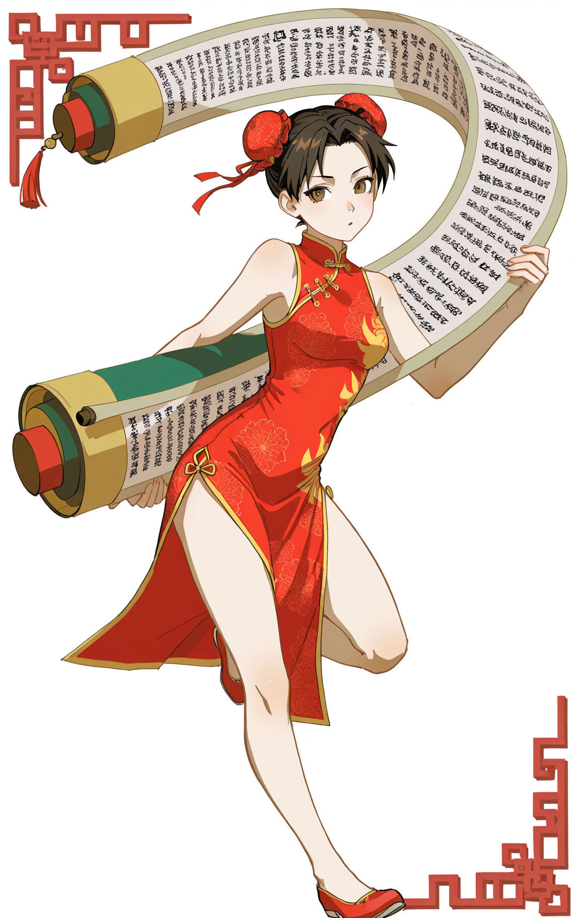outfit6, qipao, chinese clothes, red qipao, floral print, side slit, red shoes