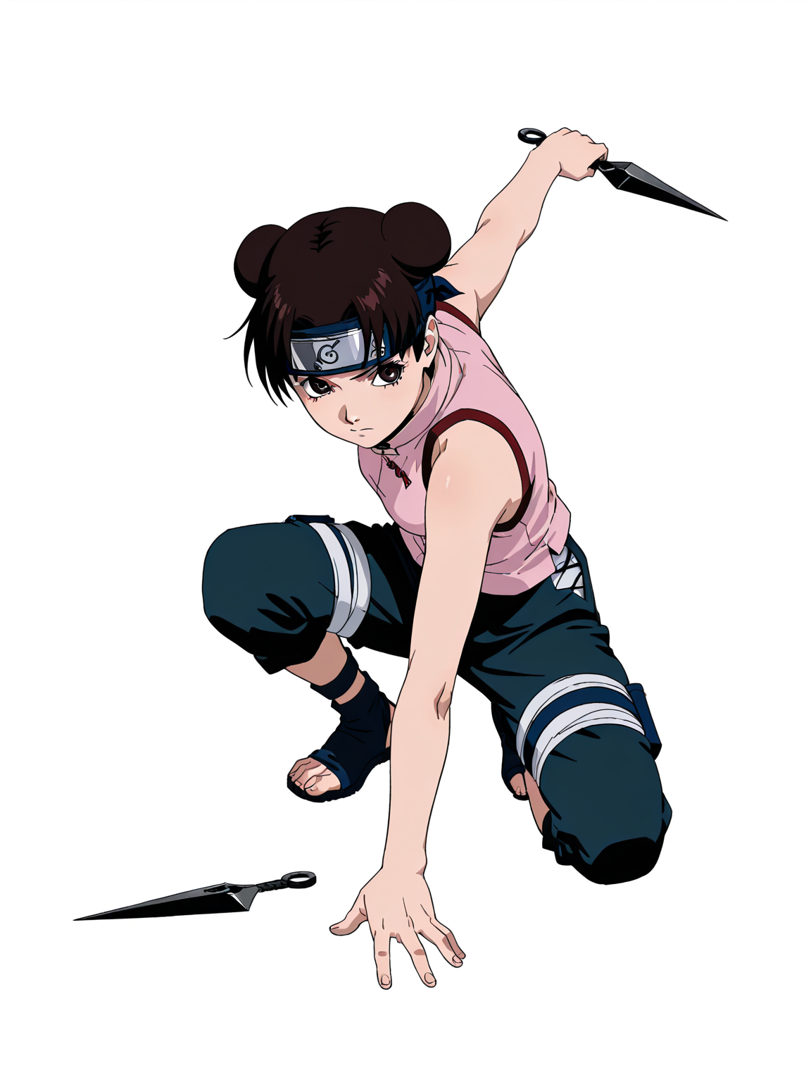 outfit2, leg strap, red trim, pink shirt, high collar, dark blue pants, sleveless, bare shoulders