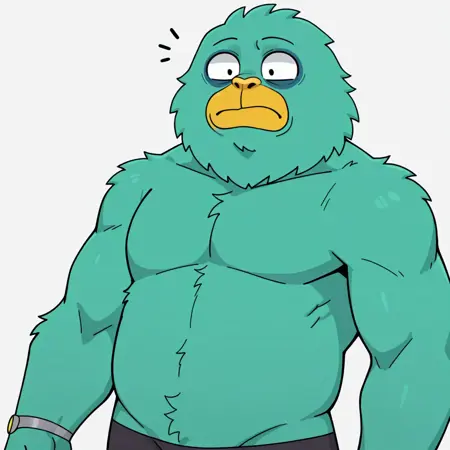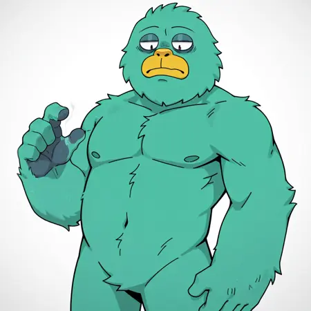 yeti_dyor, yeti, humanoid, turquoise body, yellow nose, yellow mouth, furless, fluffy body