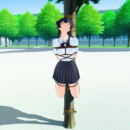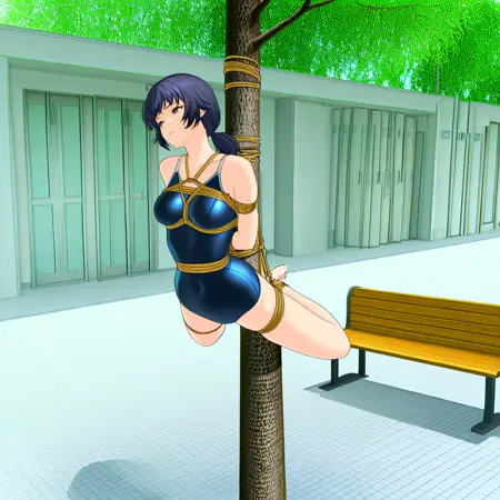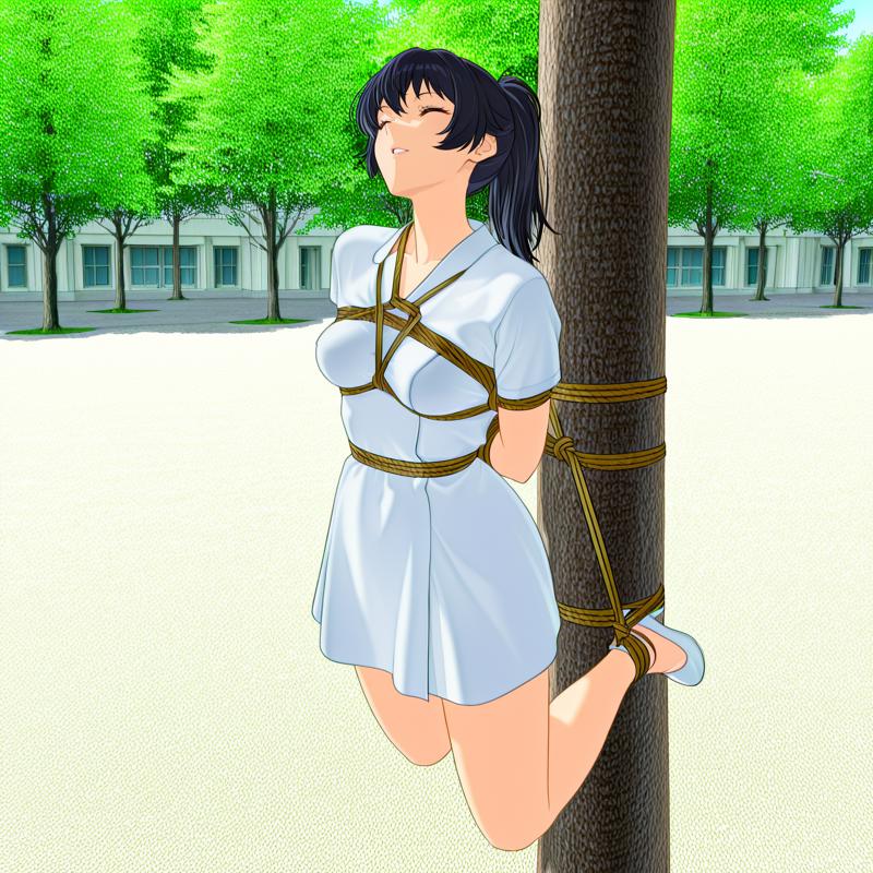polesuspension, bound, shibari, 1girl, 绑在树上,户外