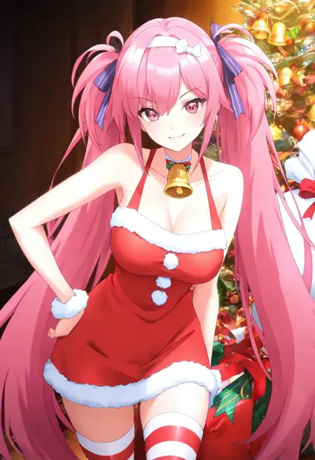 rie_gt_nekoforge, 1girl,pink eyes,pink hair,very long hair,twintails,breasts,bangs,hair ribbon, v-shaped eyebrows,