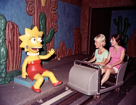 可选触发词通常能为图像增添一点风格,有时有助于避免复杂提示中出现的异常现象(例如,你的提示涉及特定乘员细节、场景类型和机械人偶等)。一般来说,若使用可选触发词,它最适合作为“游乐设施”元素的形容词。请包含 “a” 并在其后不加逗号——至少对我而言是如此。效果因人而异。