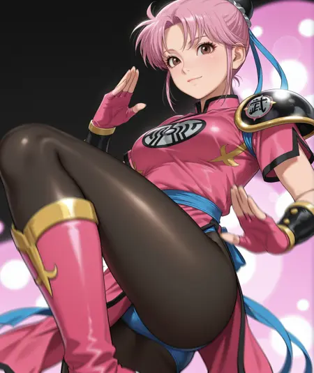 breasts, medium breasts, gloves, dress, short sleeves, fingerless gloves, armor, chinese clothes, shoulder armor, pink dress, china dress,