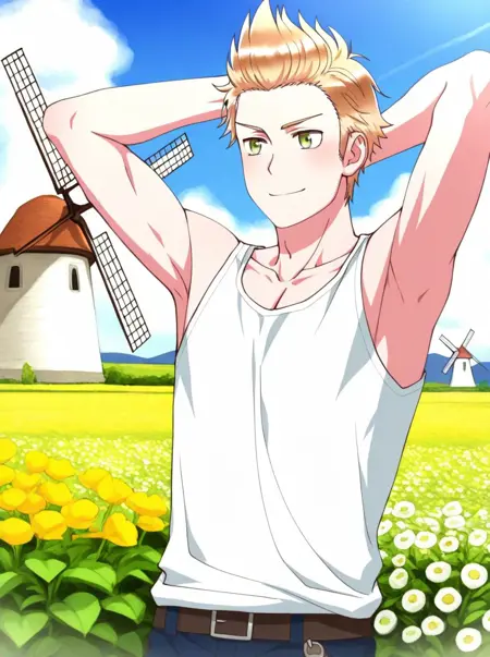 Trigger words: 1boy, Netherlands, blonde hair, male focus, solo
