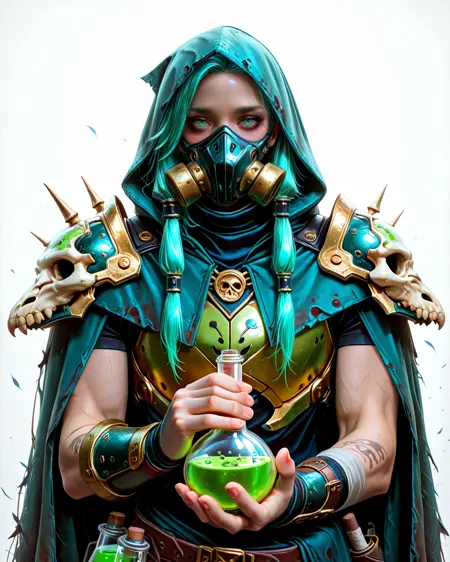 toxic clothing, poison armor, flasks on armor, drains poison, poison clothing, tubes, necro clothing, plague, plague armor,