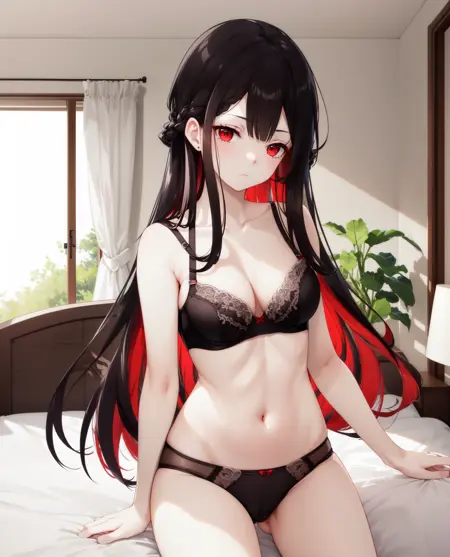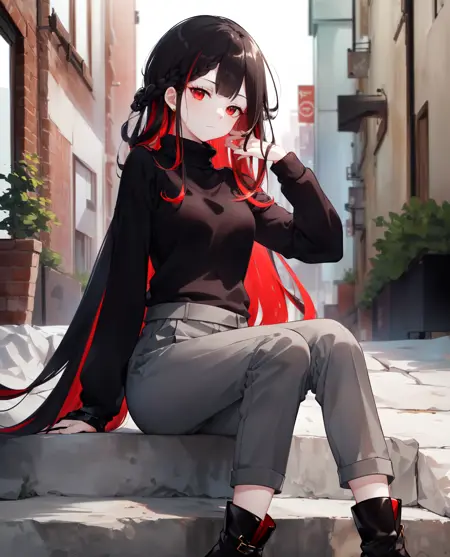 To generate her two tone hair more consistently use: multicolored hair, black hair, red hair