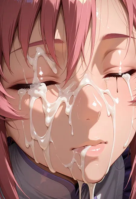 thickcum_face,(浓稠精液,浓稠液态精液,眼睛周围精液,额头上有精液,眼睑上有精液,液滴状精液:1.5),闭眼大量精液,lora:thich\_cum\_face:0.8,