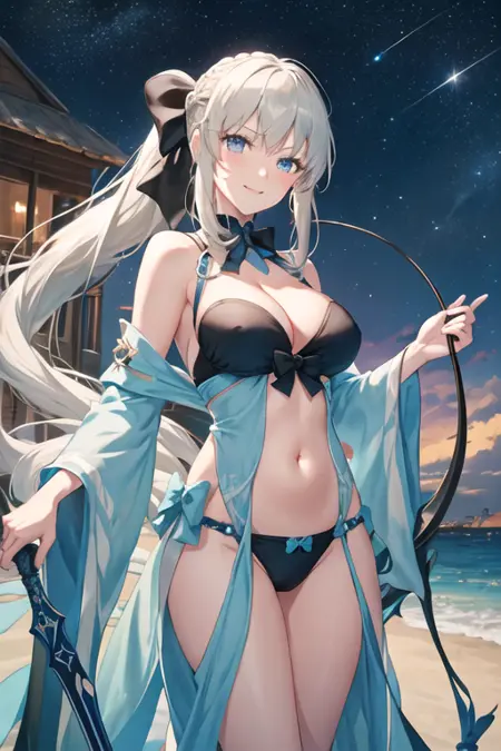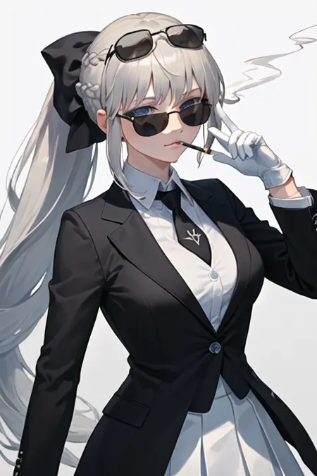 触发词为 morgan_fgo,推荐标签为:best quality, masterpiece, highres, solo, {morgan_fgo:1.15}, long_hair, blue_eyes, braid, bangs, ponytail, breasts, bow, black_bow, french_braid, grey_hair, hair_bow, very_long_hair, large_breasts, sidelocks, cleavage。