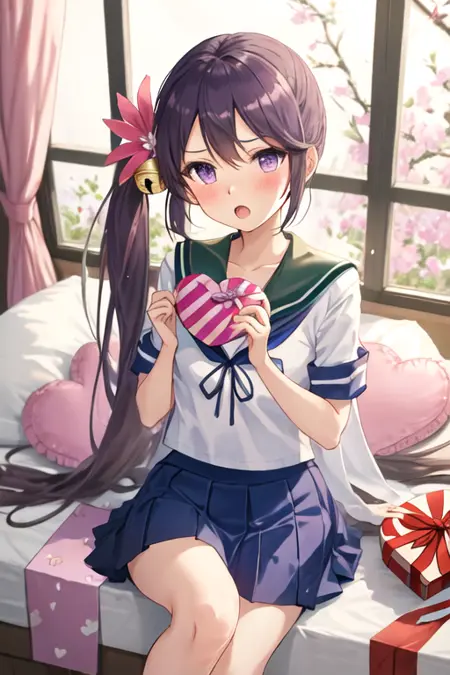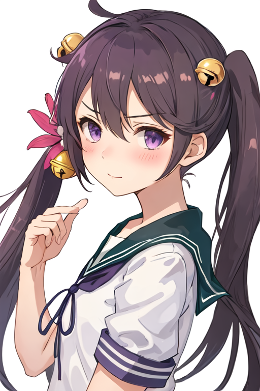 The trigger word is akebono_kantaicollection, and the recommended tags are best quality, masterpiece, highres, solo, {akebono_kantaicollection:1.15}, purple_hair, long_hair, hair_ornament, side_ponytail, purple_eyes, flower, hair_flower, hair_bell, bell, jingle_bell, serafuku, blush, very_long_hair.