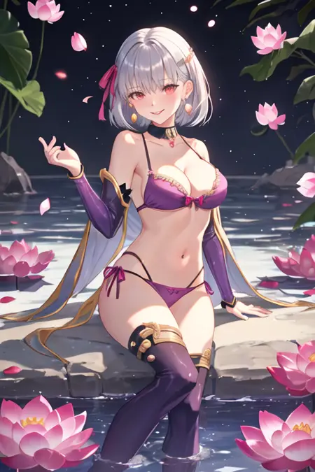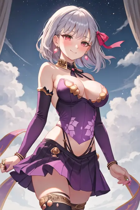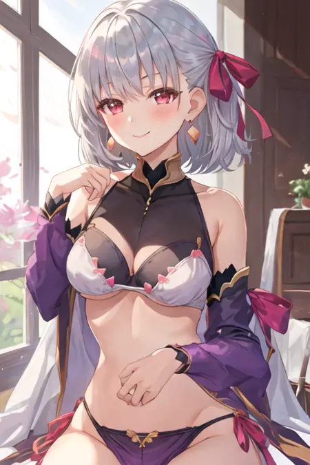 트리거 단어는 kama_fgo이며, 권장 태그는 best quality, masterpiece, highres, solo, {kama_fgo:1.15}, red_eyes, bangs, ribbon, hair_ribbon, jewelry, earrings, breasts, white_hair, blush, smile, short_hair, long_hair, small_breasts, grey_hair, large_breasts입니다.