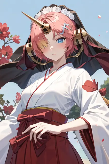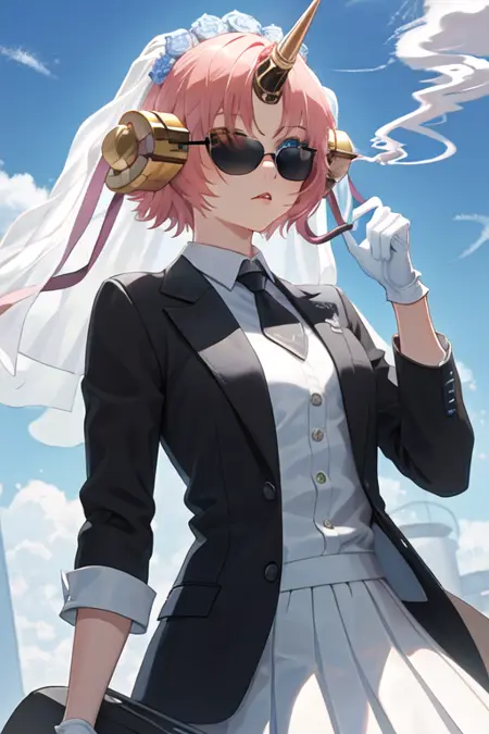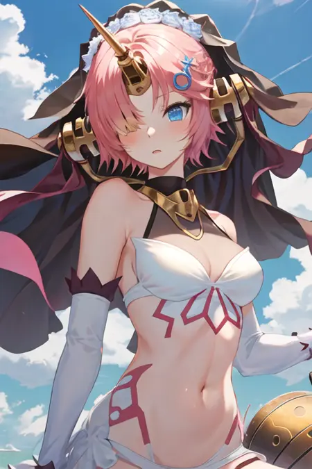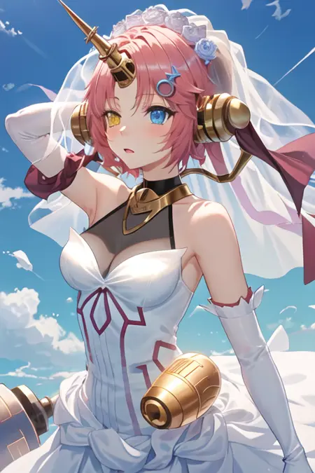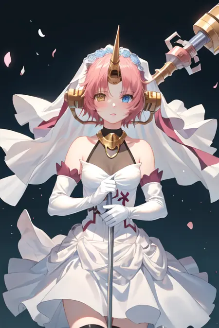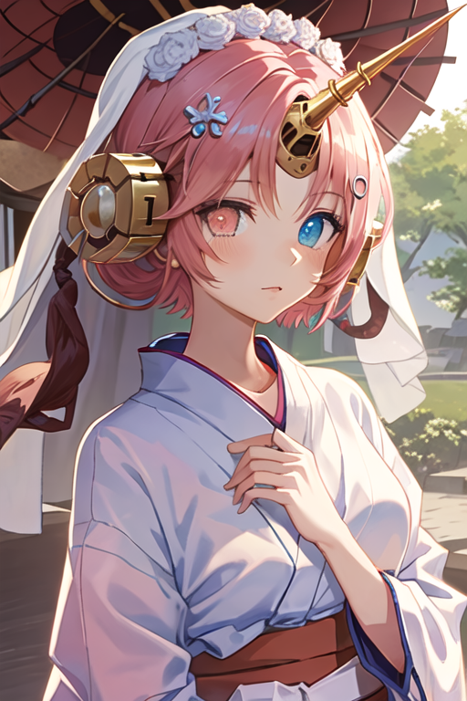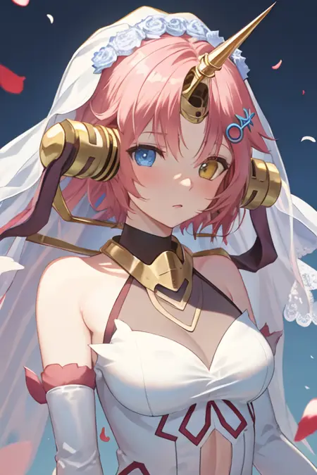 トリガーワードはfrankenstein_fgo、推奨タグはbest quality, masterpiece, highres, solo, {frankenstein_fgo:1.15}, horns, single_horn, mechanical_horns, pink_hair, short_hair, blue_eyes, veil, breasts, yellow_eyes, heterochromia, hair_over_one_eye, hair_ornamentです。