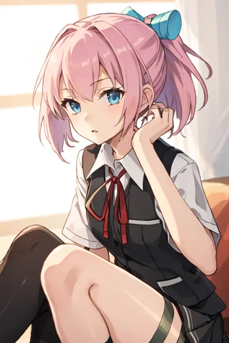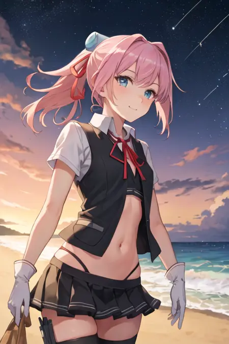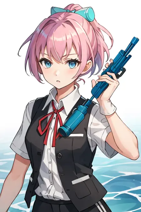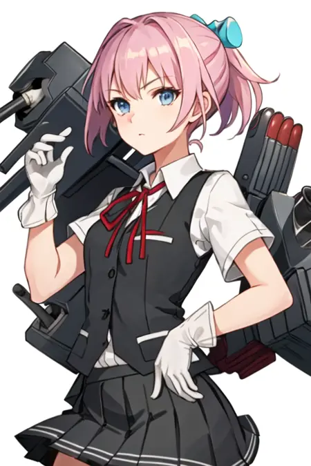 The trigger word is shiranui_kantaicollection, and the recommended tags are best quality, masterpiece, highres, solo, {shiranui_kantaicollection:1.15}, pink_hair, short_hair, ponytail, blue_eyes, ribbon, vest, neck_ribbon, red_ribbon, hair_ornament.