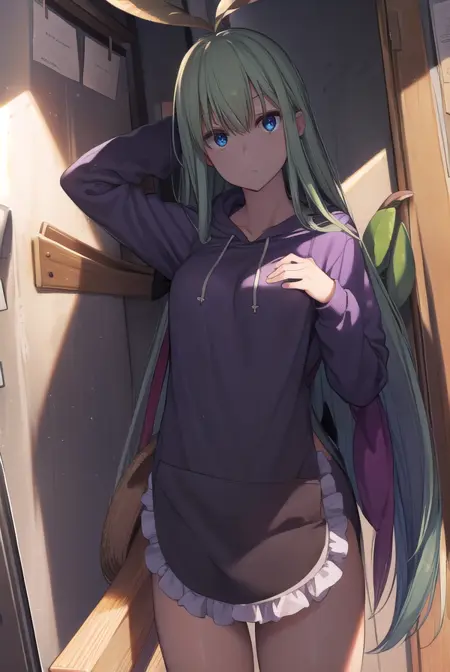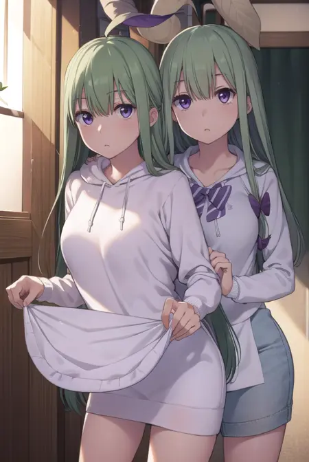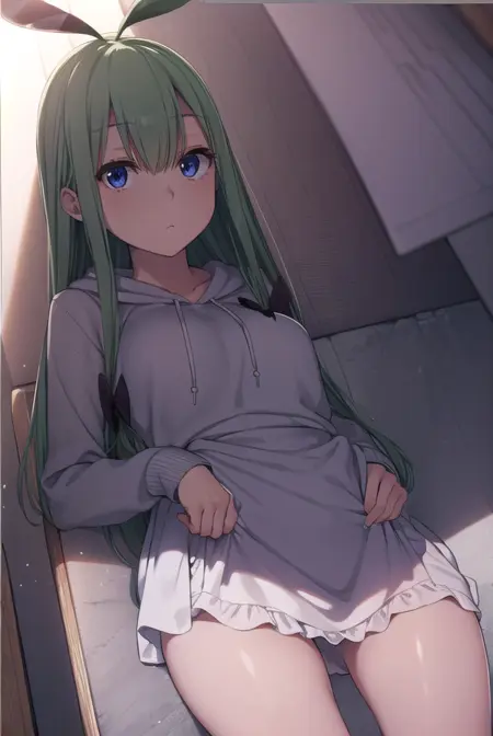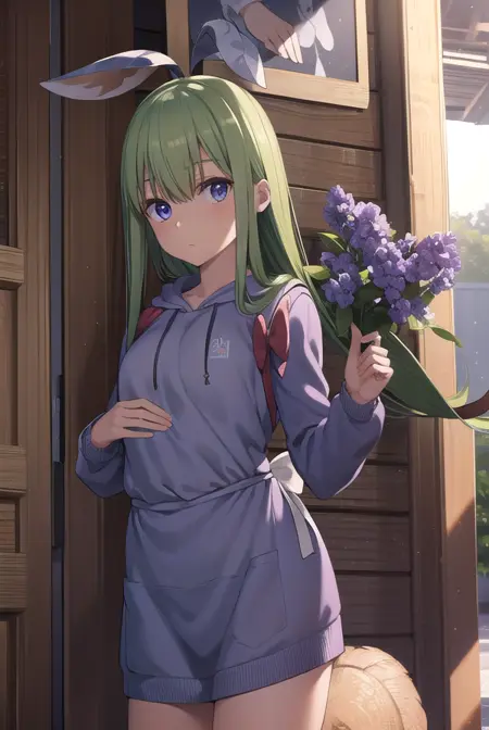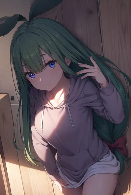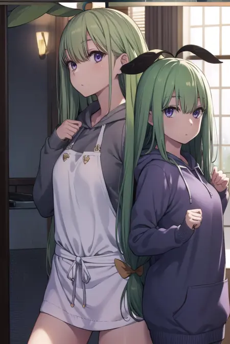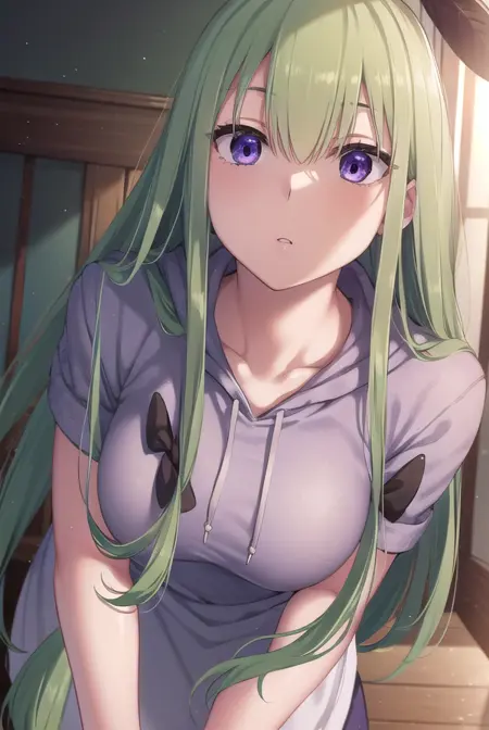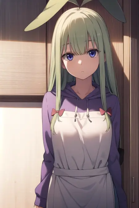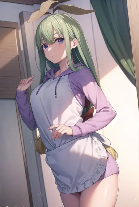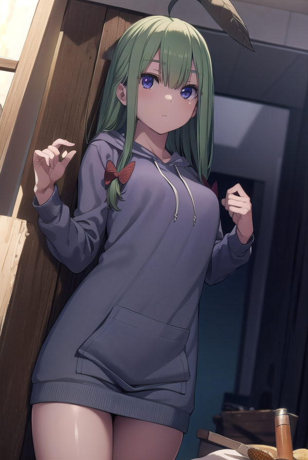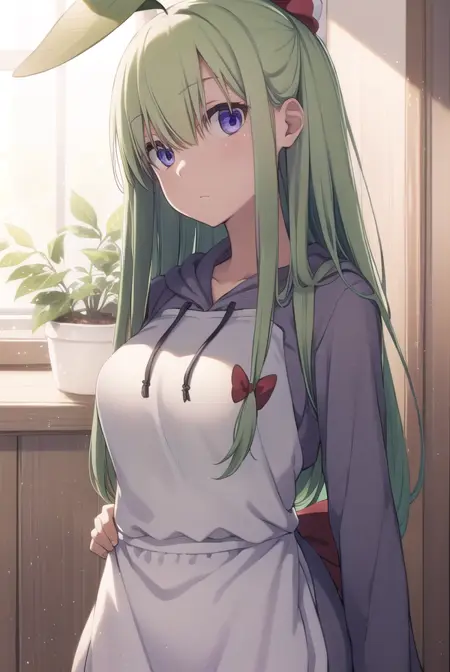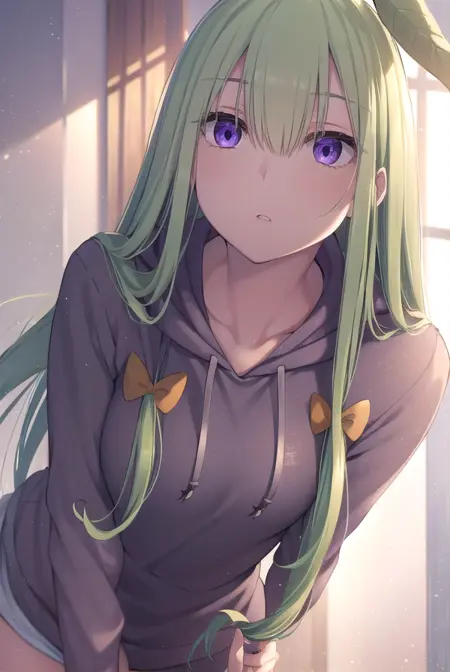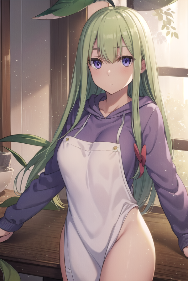 曼德拉草,长发,刘海,天线发,绿发,(紫眼:1.1),蝴蝶结,发带,