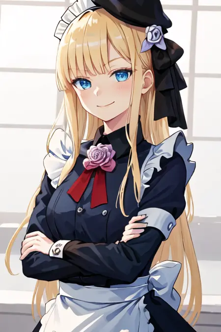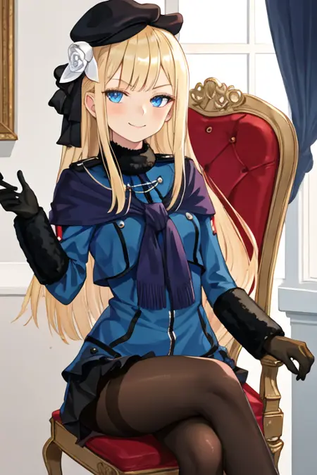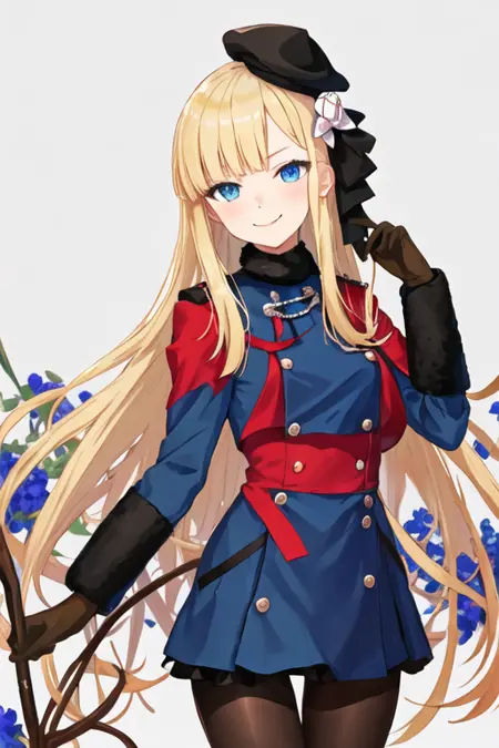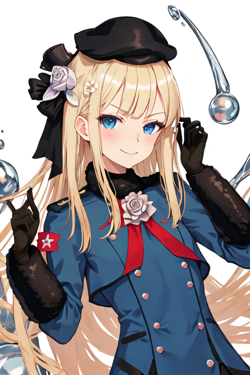 The trigger word is reines_fgo, and the recommended tags are best quality, masterpiece, highres, solo, {reines_fgo:1.15}, bangs, blonde_hair, long_hair, smile, hat, flower, blue_eyes, black_headwear, tilted_headwear, hair_ornament, blush, closed_mouth, hair_flower.