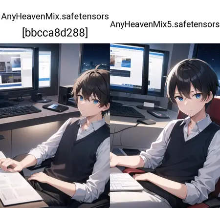 AnyHeavenMix는 제가 오랫동안 사용해온 모델입니다. 이 모델은 Anything V4.5(혹은 AnyHeavenMix5 버전을 사용할 경우 Anything V5)와 Corneo의 7th Heaven Mix를 50/50으로 결합한 것입니다.