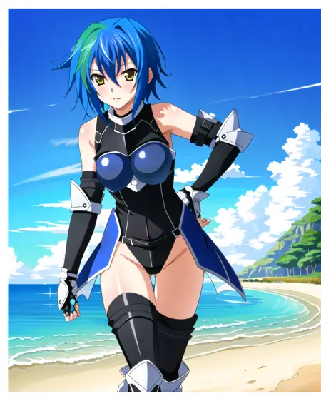 Rossweisse 전투 암호 태그(사용 시 (dxd 암복:1.4)가 필요할 수 있음): (dxd 암복:1.4), 흉갑, 손가락 없는 화랑, 부츠, 허리 보호대, 흉갑 아래 검은 레오타르드, 검정 정강이까지 오는 양말