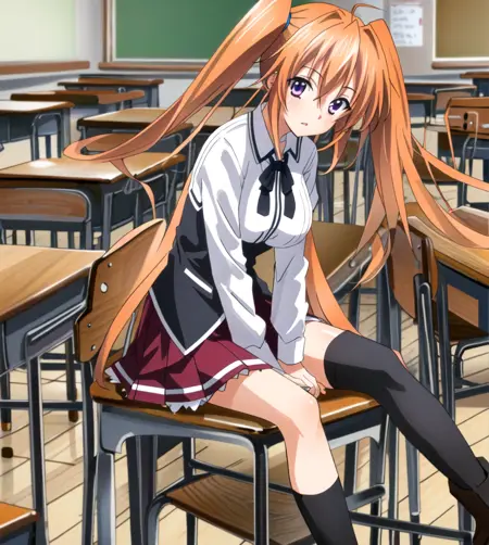 Irina Shidou 태그: 1명의 소녀, 보라색 눈, (Irina Shidou dxd), 안테나 머리, 오렌지 머리, 긴 머리, 이중 꼬리, 매우 긴 머리