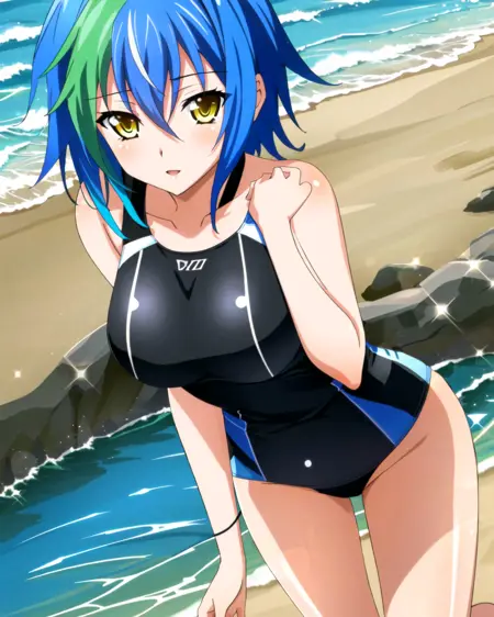 Xenovia Quarta:1girl,多彩发色,蓝发,短发,绿发,黄眼,黑板,双色发,渐变发,Xenovia Quarta dxd,
