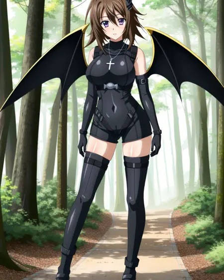 教堂战斗服标签:(dxd outfit:1.4),肘部手套,黑色手套,遮肚脐,大腿靴,高领,十字架项链,项链,十字架,