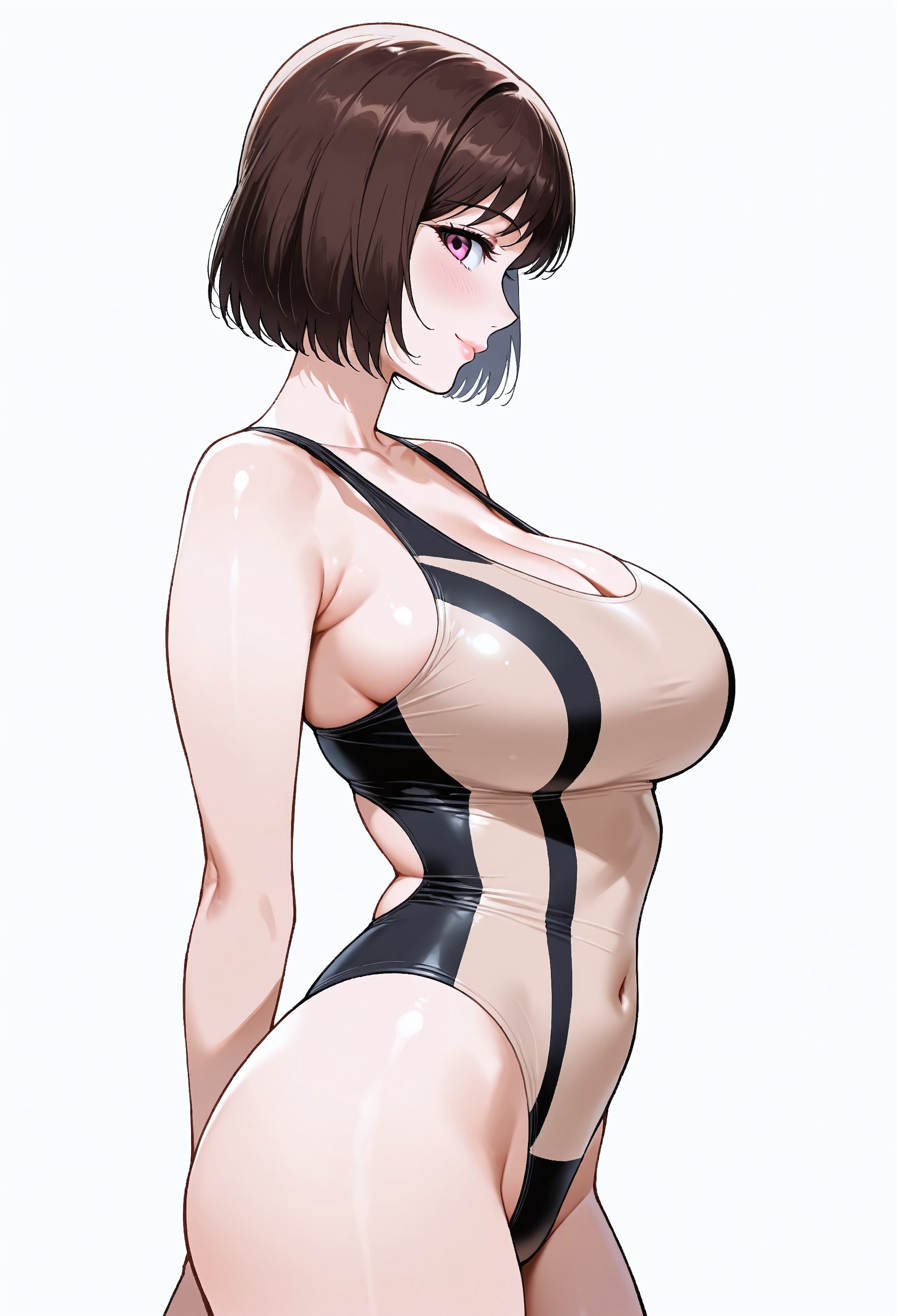 b3ig3_sw1msu1t, competition swimsuit, two-tone one-piece swimsuit, beige one-piece swimsuit, black one-piece swimsuit