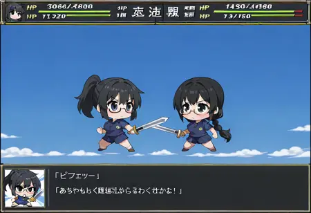 SRPG風のバトル画面スタイル。チビスタイル以外にも対応