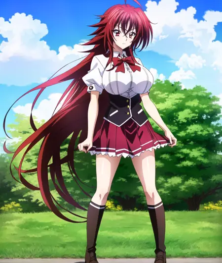 常规 DxD 校服标签:(dxd clothes:1.4),校服,裙子,白衬衫,(白袜子),黑靴子,红裙子,黑束腰,