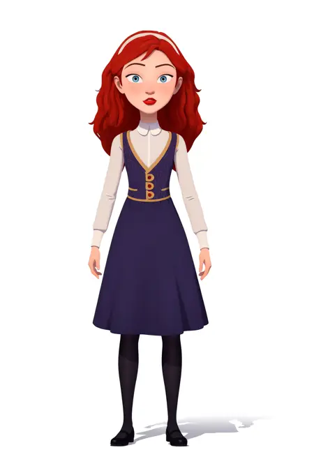 Basic prompts : 1girl, maricelagutierrez, red hair, blue eyes, long hair, red lips