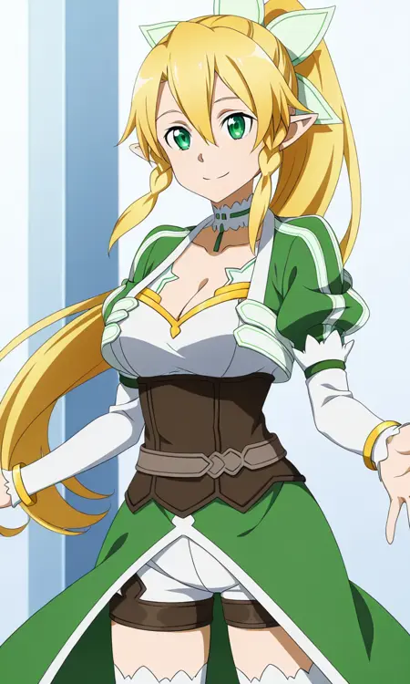 leafa (sao), long hair, blonde hair, hair between eyes, green eyes, ponytail, braid, pointy ears, twin braids, anime screencap, pointy ears,