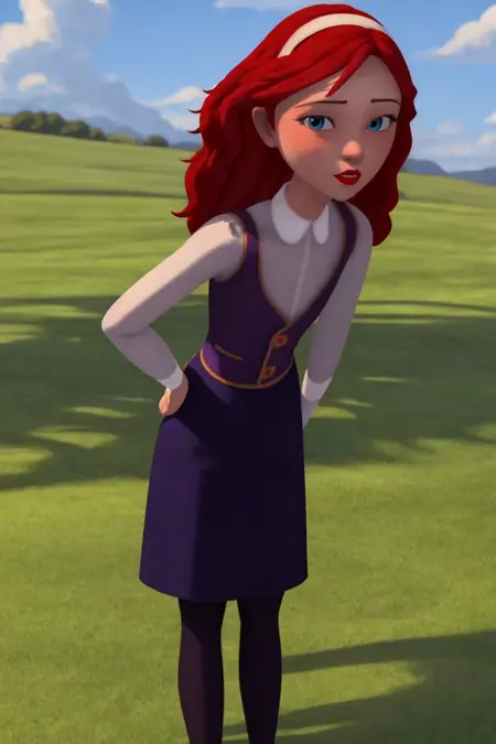 기본 프롬프트: 1girl, maricelagutierrez, red hair, blue eyes, long hair, red lips