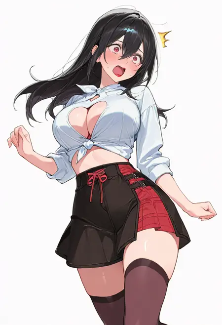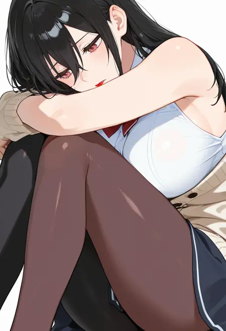 mayuri_cnr, 1girl, black hair, long hair, red eyes, bangs, hair between eyes, red lips, large breasts,