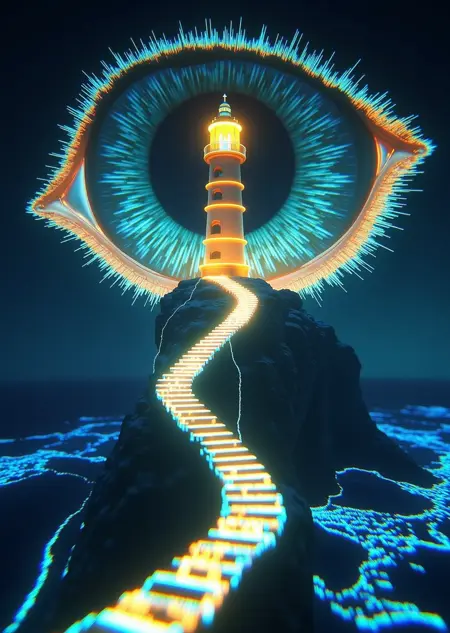 超现实、梦幻,充满柔和的发光细节。