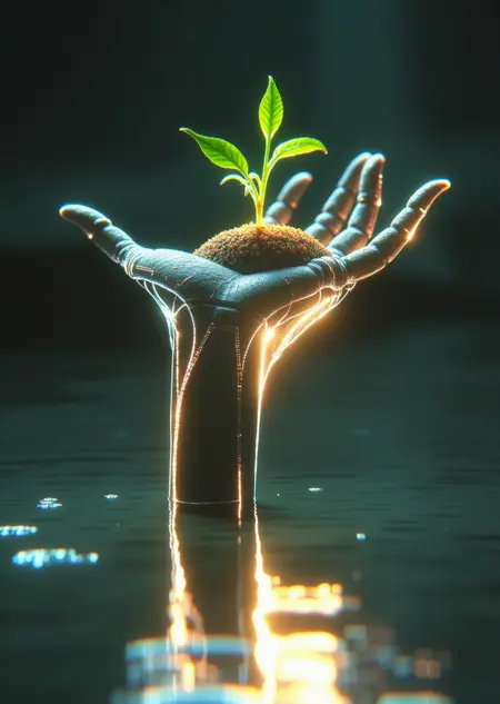 在提示词中尝试加入:“soft light, glowing details, surreal atmosphere”