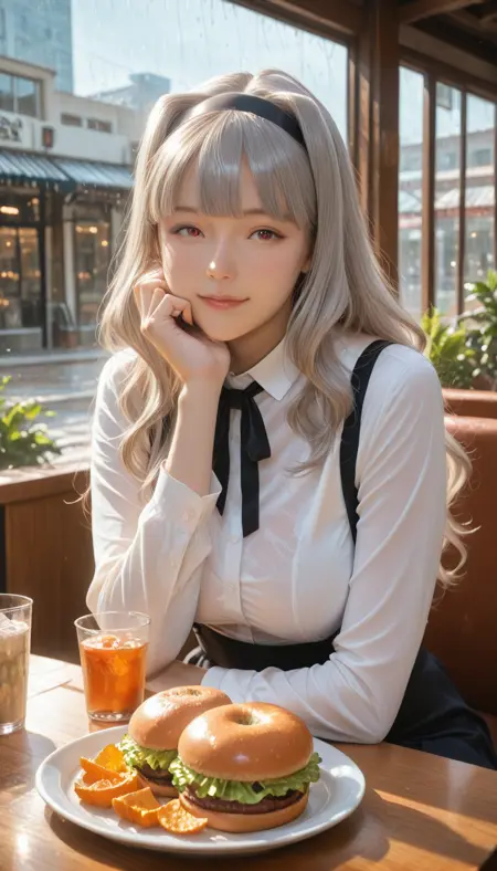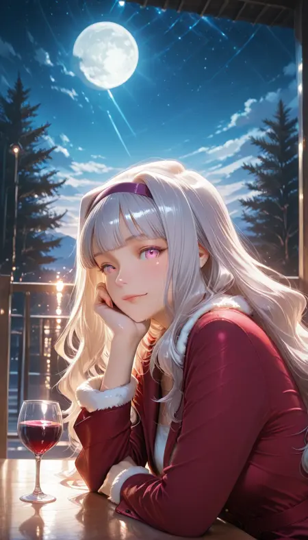 IMShijTaka, 긴 머리, 가슴, 큰 가슴, 보라색 눈, 흰 머리, 회색 머리, 측면 머리카락, 둔한 앞머리, 빨간 눈, 파도친 머리, 머리카락이 들어간,