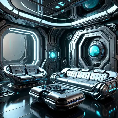 a scifi chrometech livingroom,or the aesthetics like
