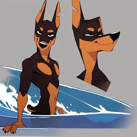 Spike(101), solo, 1boy, dobermann, dog, dog boy, doberman, black and tan fur, two-toned tail, black ears, black eyes, black nose