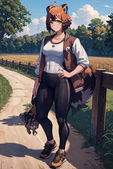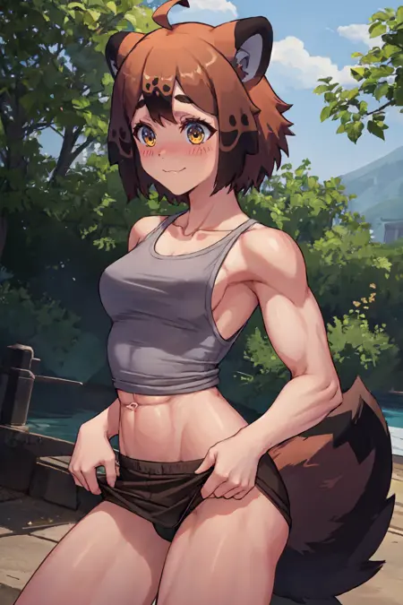 트리거: **"TanukiWersmanManityro, 노란 눈, 단발"**은 항상 필요하며, 원한다면 "너구리 꼬리"에 "근육질, 복근" 또는 "근육질 여성, 복근"을 추가하여 적절한 체형을 구현하세요.