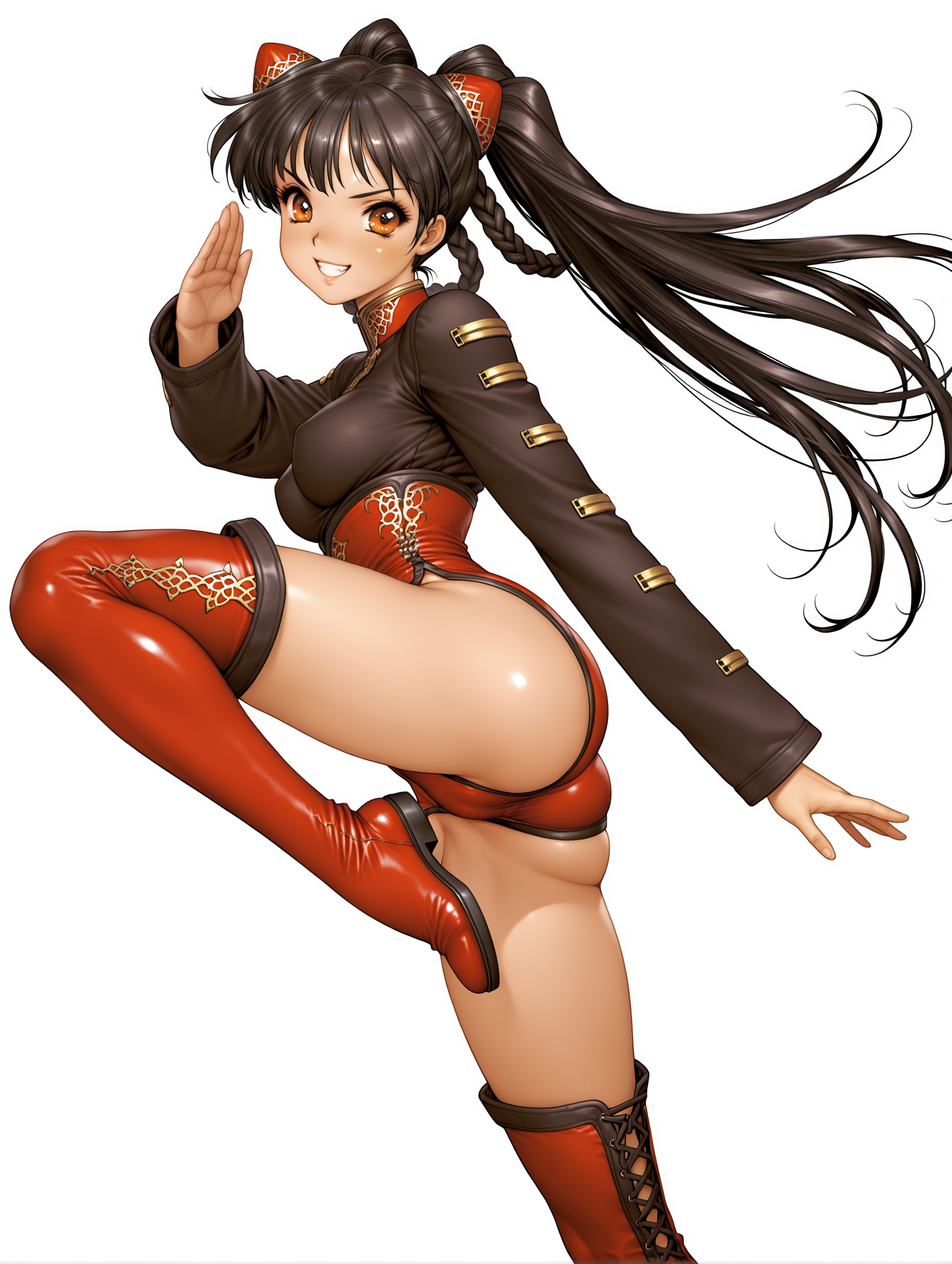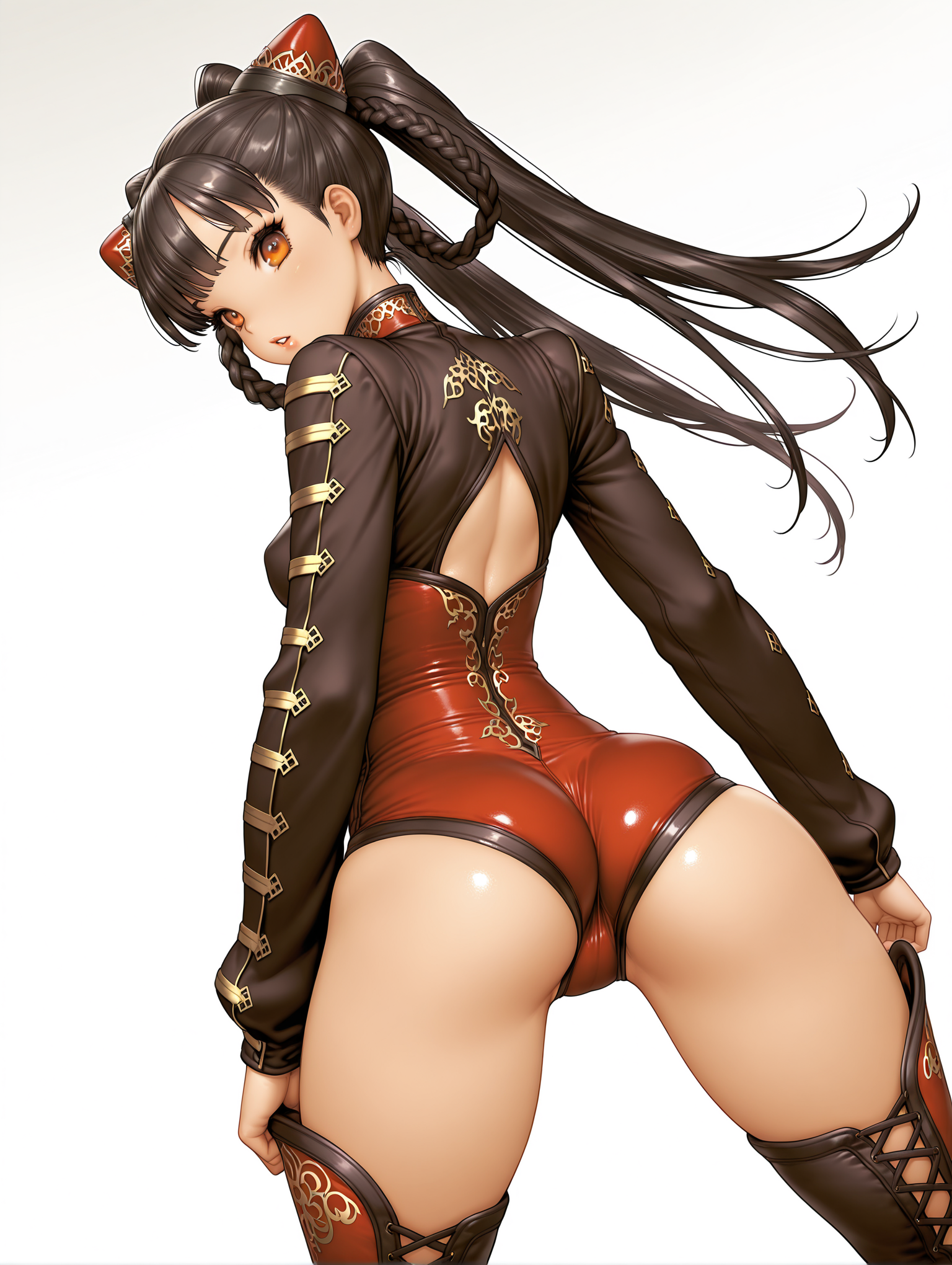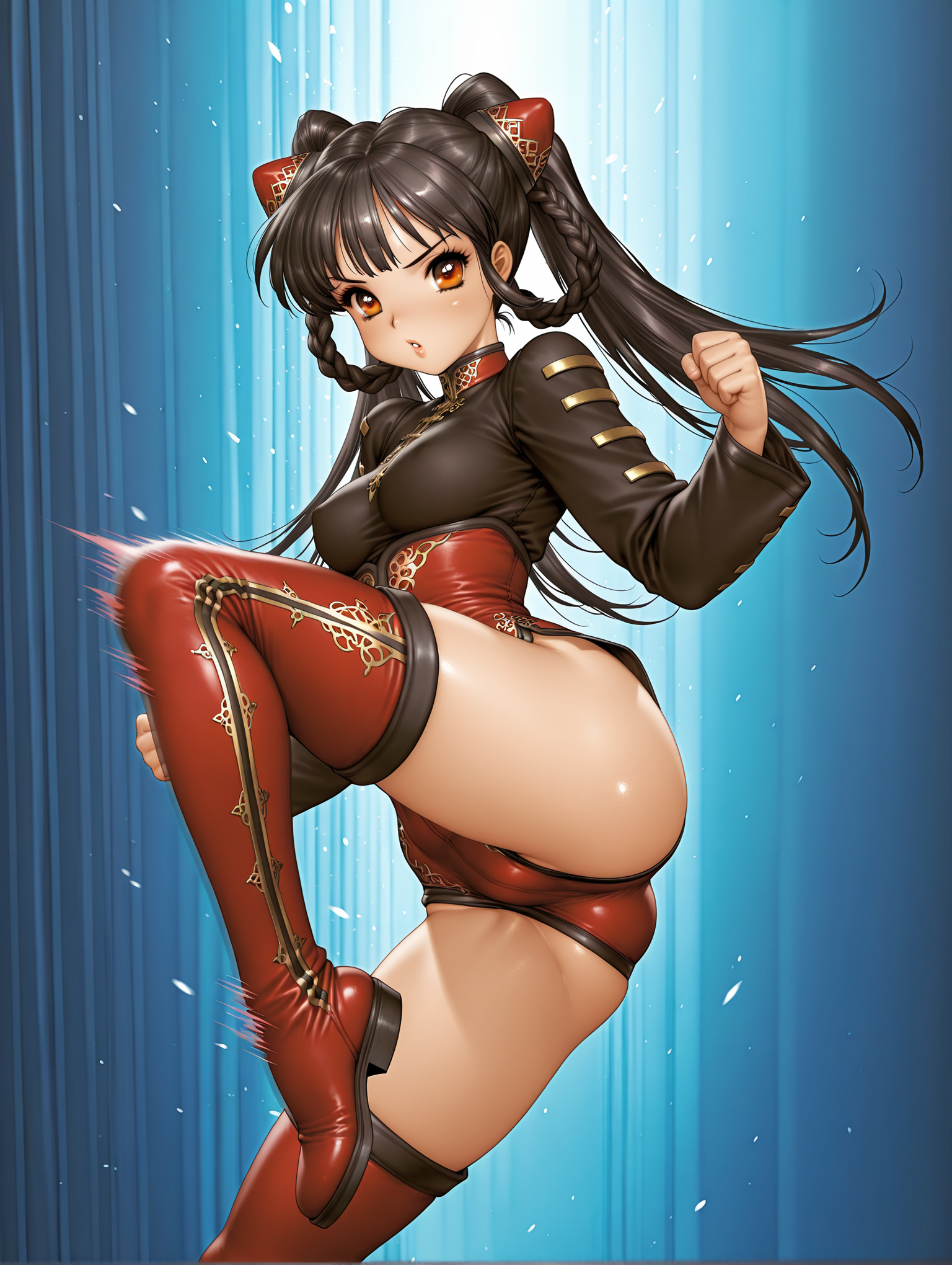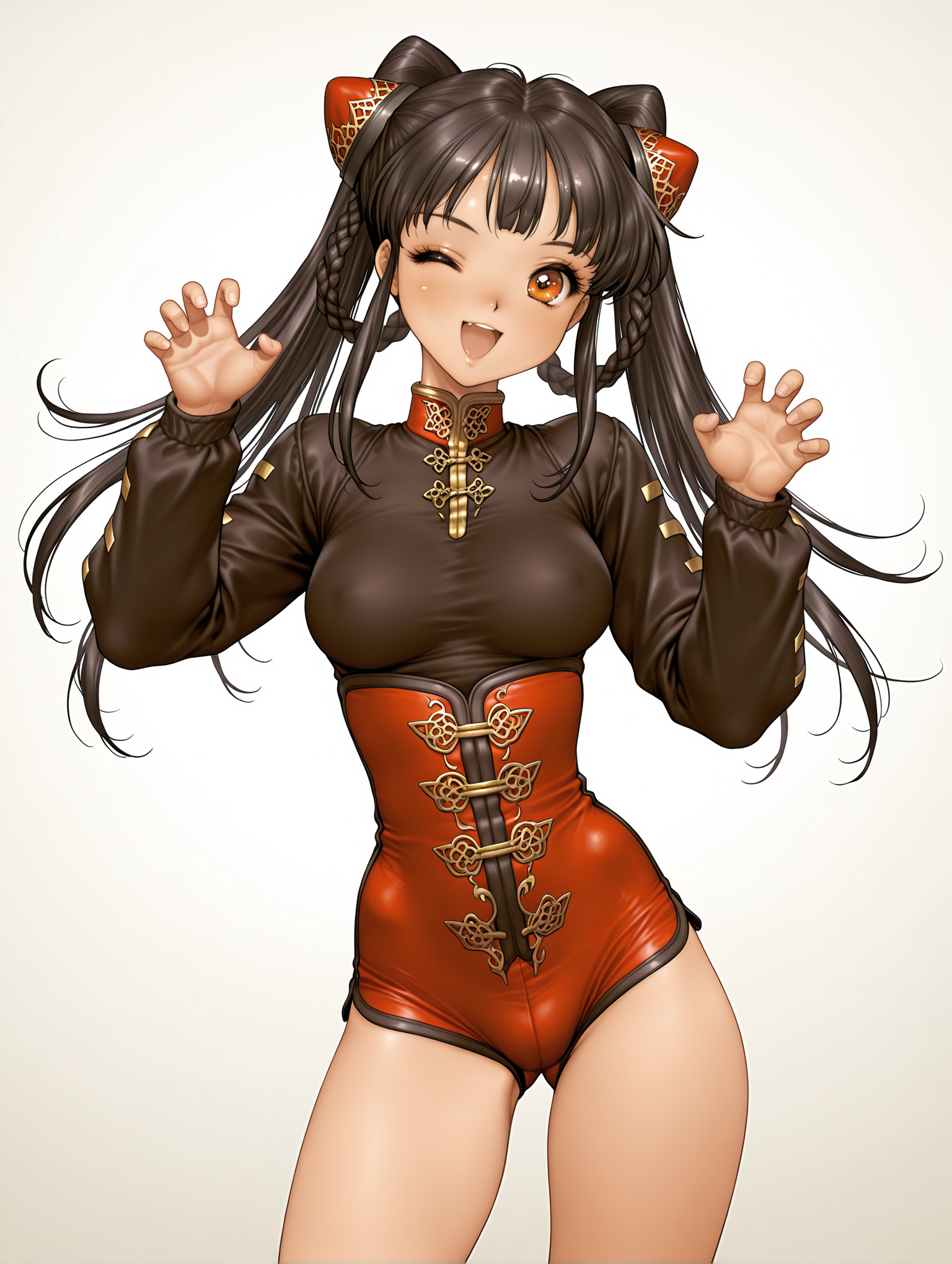 トリガーワード・nenen_c,black hair,orange eyes,twintails,cone hair bun,double bun,hair bun,braid,