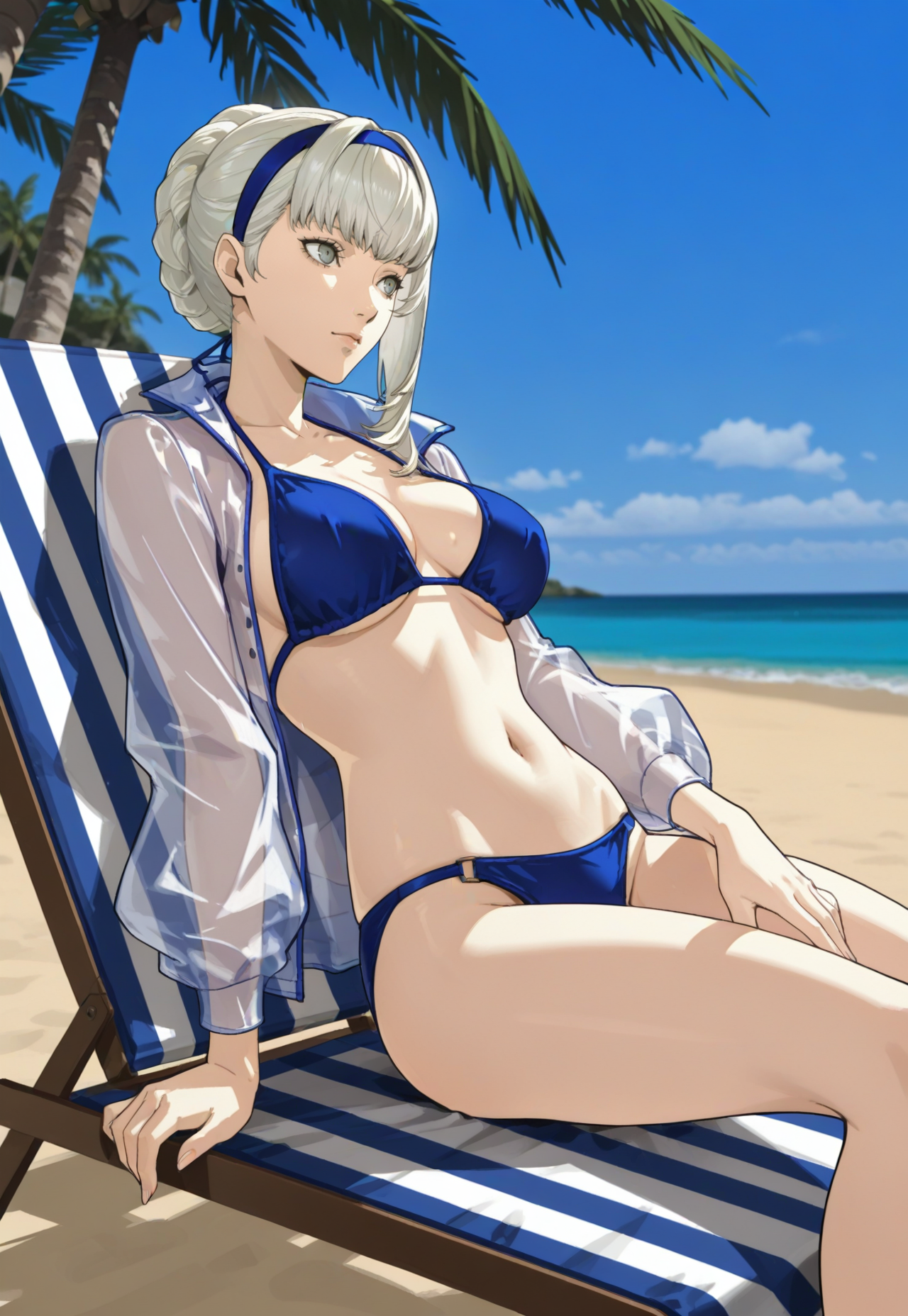 merope \(p5x\), white hair, grey eyes, blue hairband,