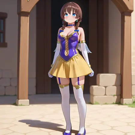 이 LoRA는 드래곤 퀘스트 시리즈의 "Divine bustier" 스타일 옷을 정확히 재현하도록 설계되었습니다.