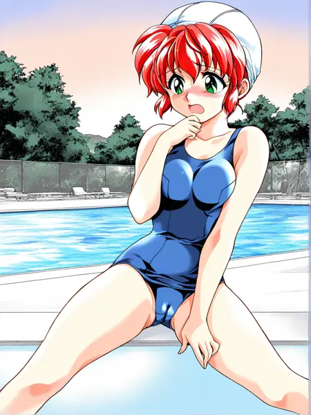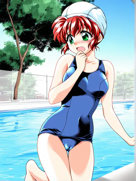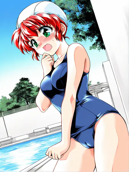 blue one-piece swimsuit, school swimsuit,