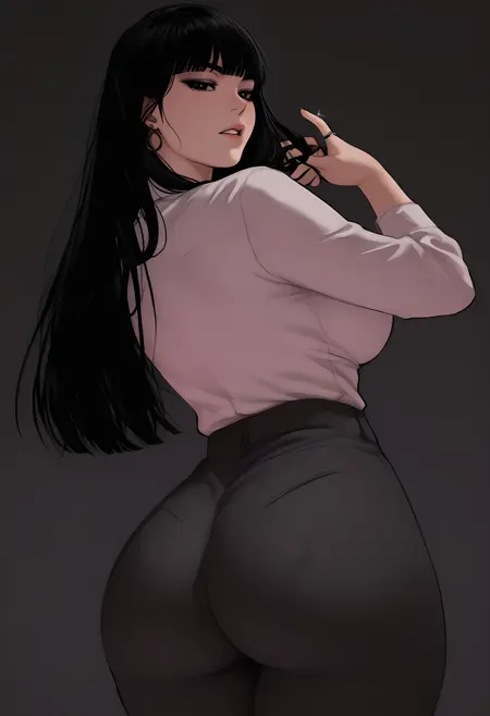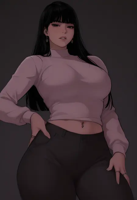 long hair, looking at viewer, bangs, black hair, parted lips, blunt bangs, black eyes, lips, eyelashes,asian,