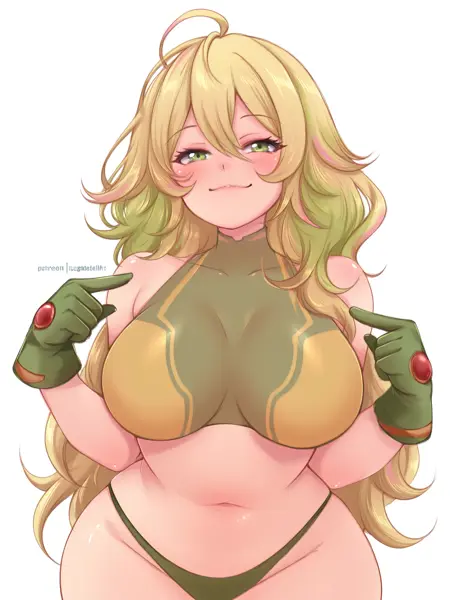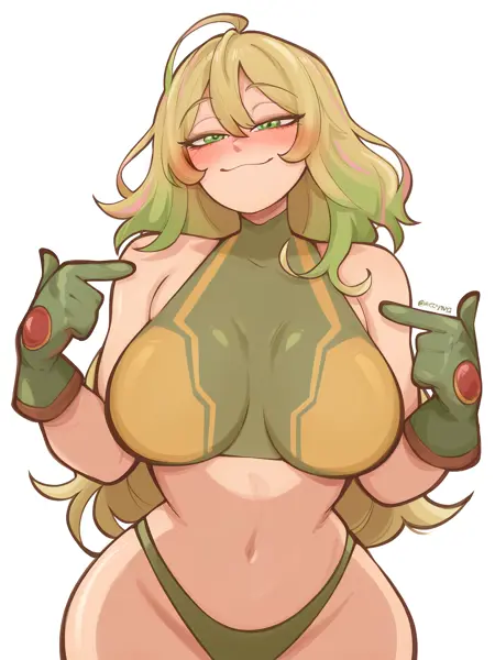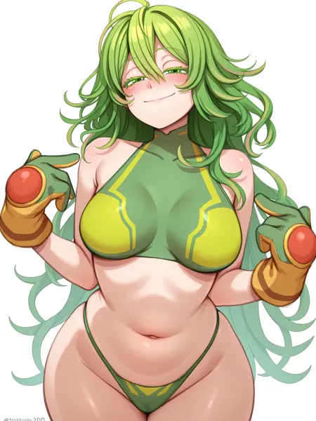 トールの衣装、ノースリーブ、下着、へそ、グリーンの手袋