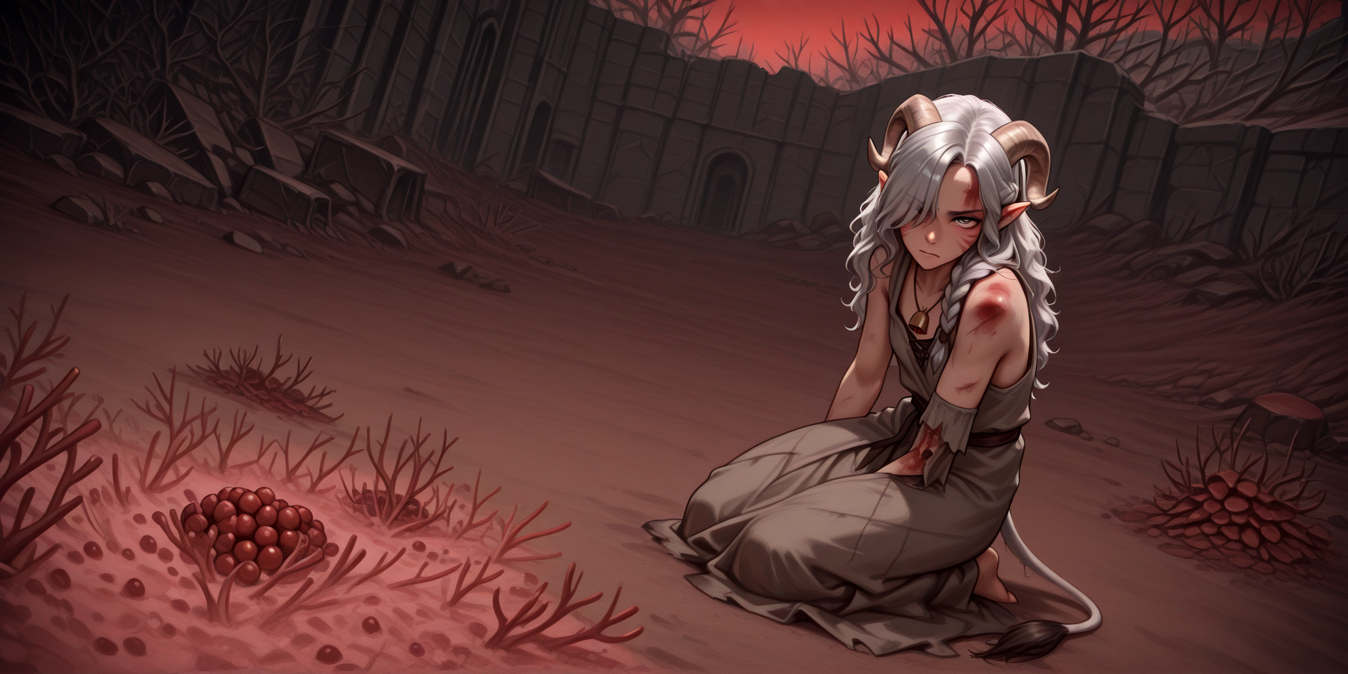 The sky here is forever stained crimson. The wind carries not sand, but red spores, and with every breath comes the sweet scent of rot that burrows deep into the lungs. People call this place Caelid, but few now remember that name. This place is now just a 'great tomb.'
