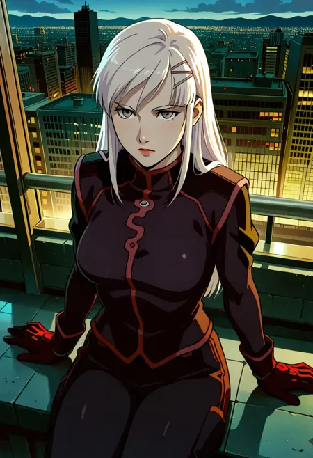 必要触发词:Nora,25岁,白发,红唇,紧身衣,深色眼睛,白色发夹