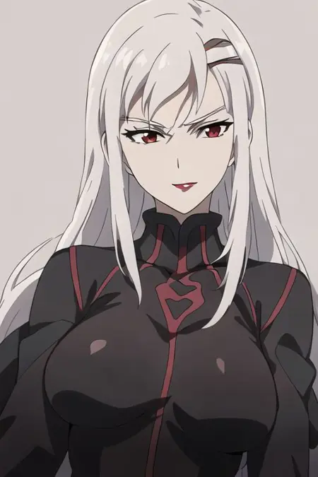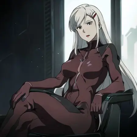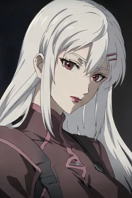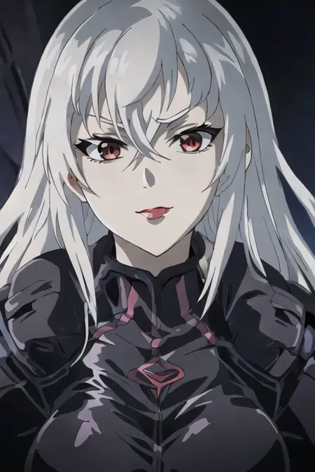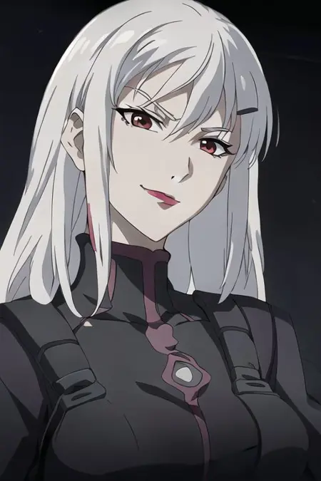 必須トリガー語:Nora、25歳、白髪、赤いリップ、ボディスーツ、黒い目、白いヘアクリップ