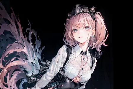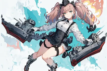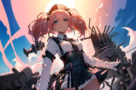 Atlanta /(Kancolle/), pink hair, twin tails, grey eyes, large breastsOriginal Outfit: