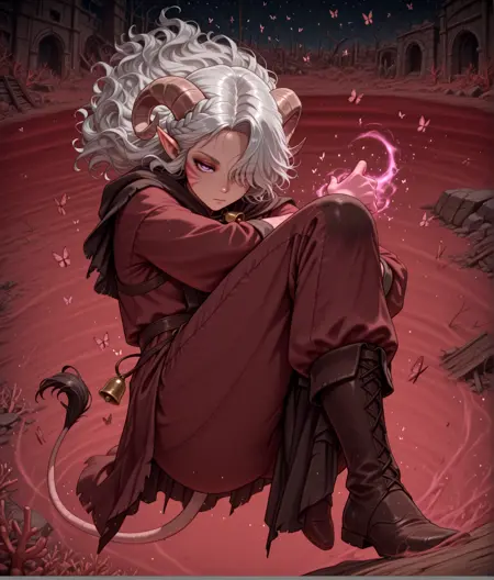 The scarlet butterflies are as the Goddess of Rot's wings.