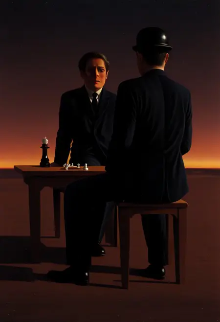 Trained on 150 images of paintings of the surrealist current (think about Magritte, Dalí, de Chirico, ...), plus some stock photo and some danbooru image. This is probably a great error, made exclusively for the lulz.