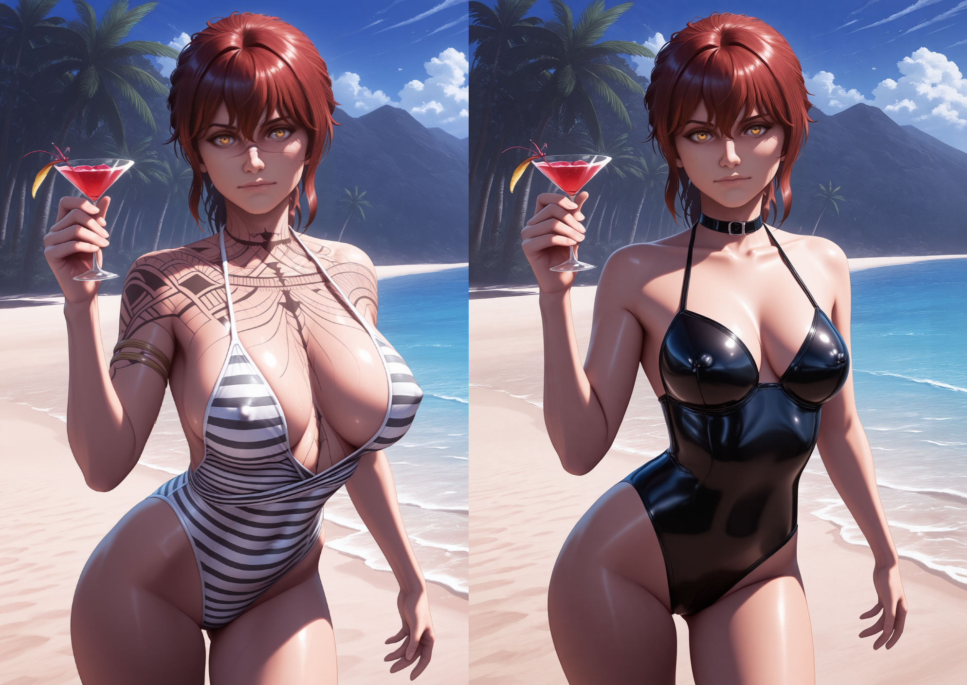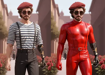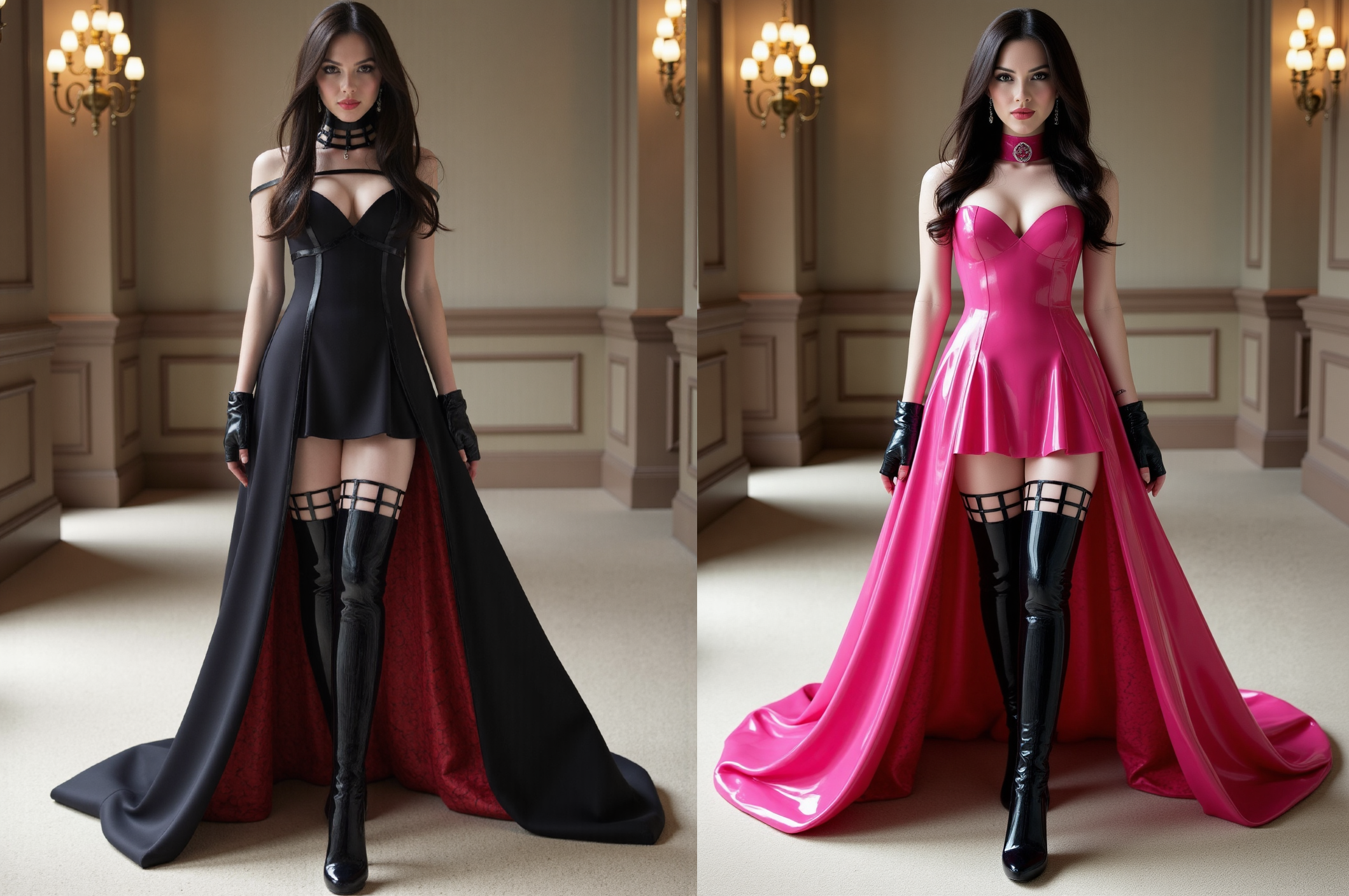 For example, "Make her wear black latex catsuit" or "make him wear blue latex shirt and jeans".