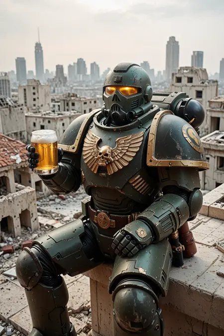我看了太多战锤片段,所以只想做个酷到爆炸的装甲。本来想做Sa'kan,但最后对只做出装甲也挺满意的;)。火蜥蜴军团本应是人类的英雄,也是所有星际战士中最有人性的一个——保护无辜者。虽然细节(肩膀、头盔)不完全准确,但对我来说,这些图已经够用了。而且有很多来自真正粉丝的优秀战锤LoRA,等我有心情时或许会更新一下。